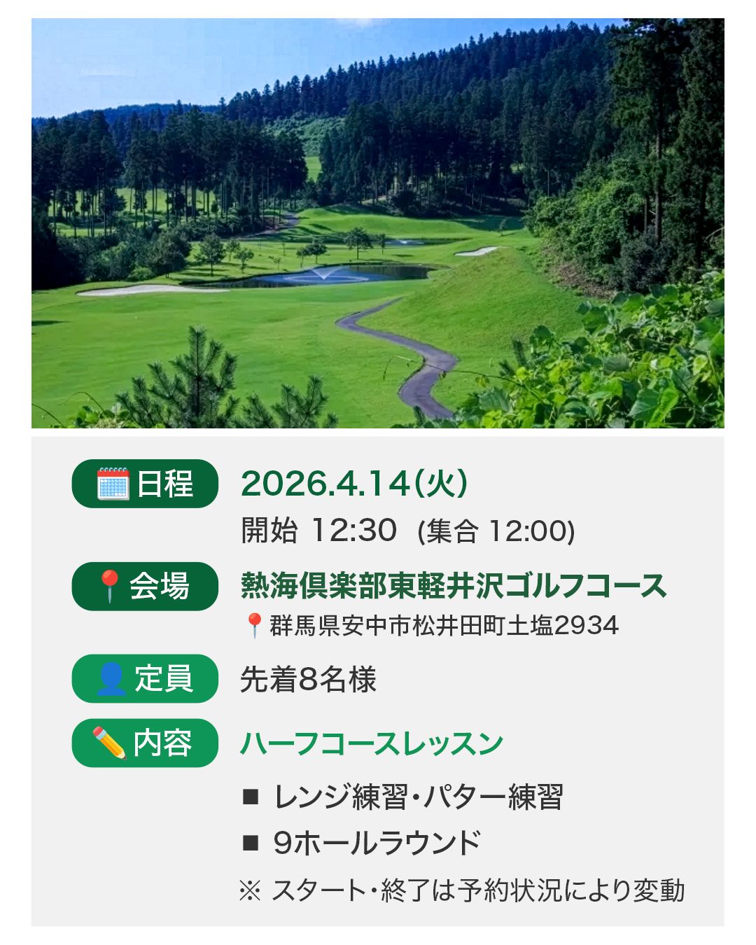 4月14日 (火) ⛳️ ハーフコースレッスン開催