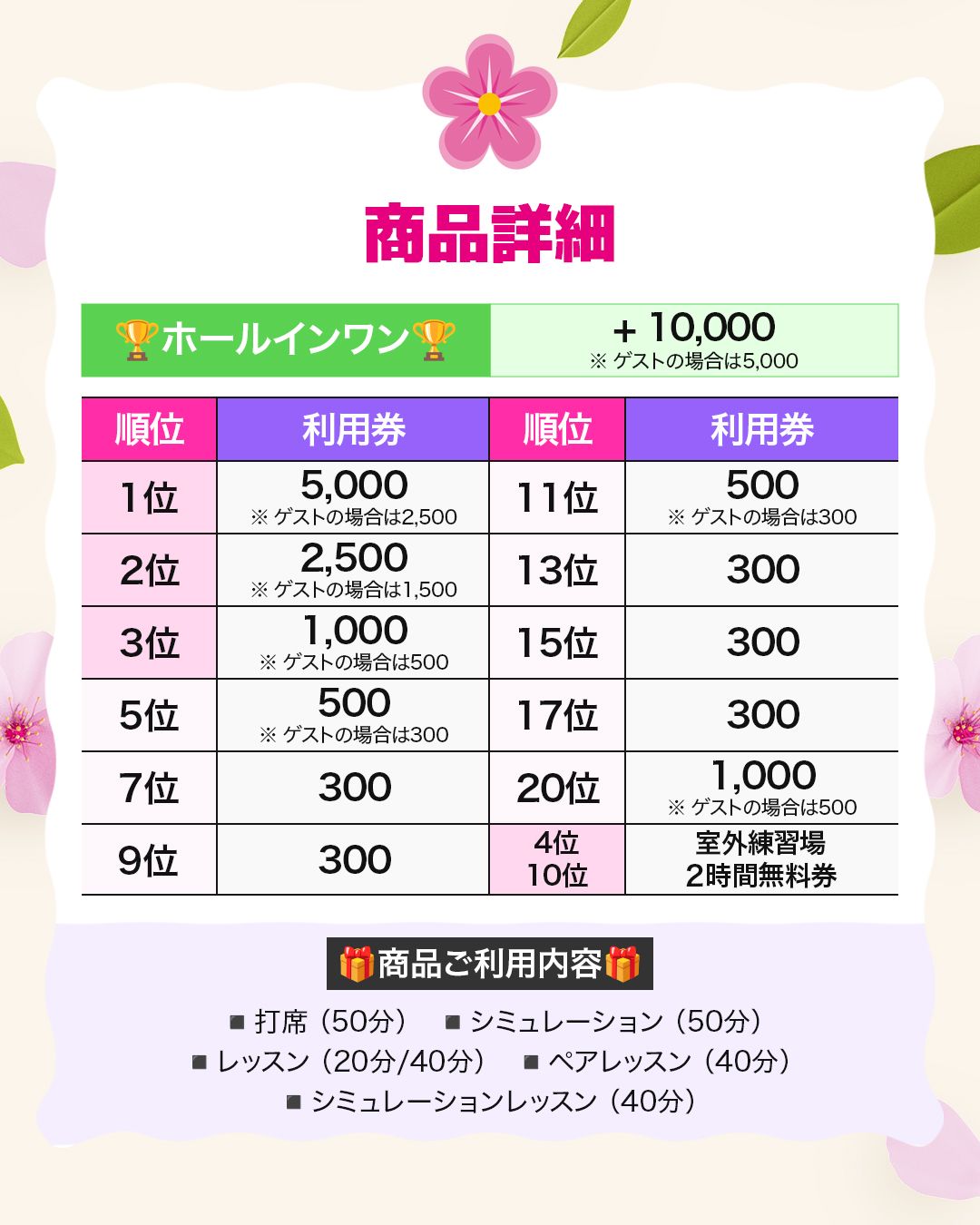※ 利用券は、当店の打席(50分)、レッスン(20/40分)、シミュレーションレッスン(40分)、ペアレッスン(40分)、シミュレーション(50分)プログラムにご利用いただけます。